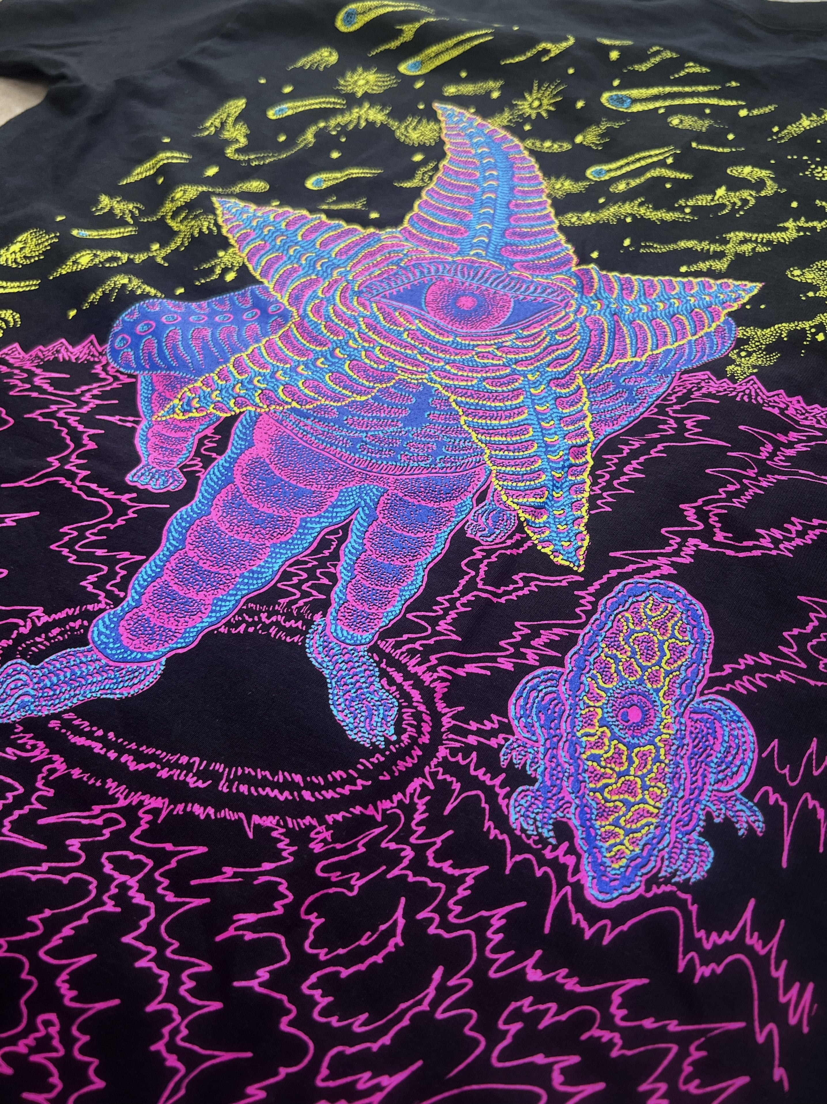 His new work "Meteor'" is made into goods by silkscreen printing.