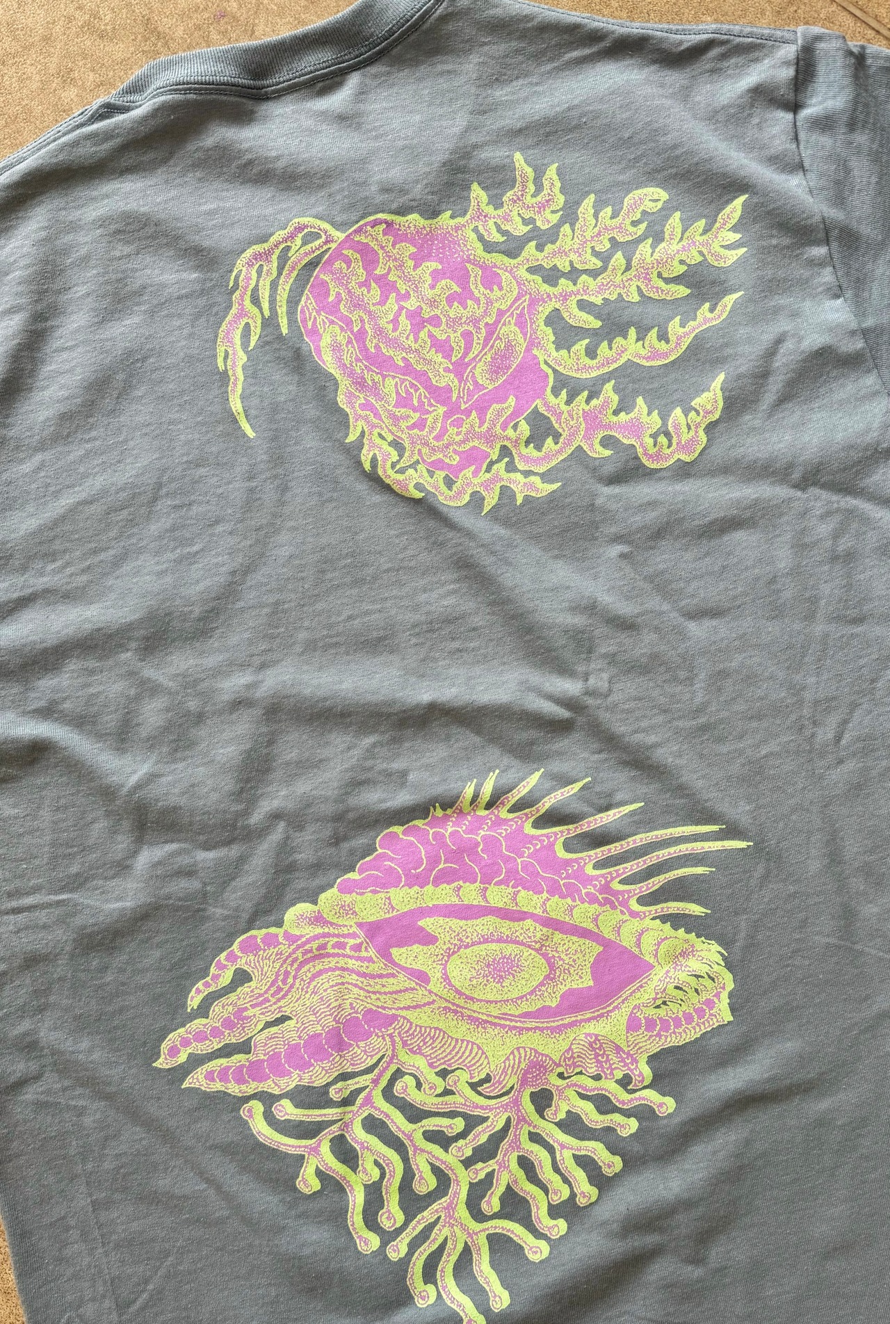 前面と背面、袖のプリントはそれぞれ2色のインクを使用。